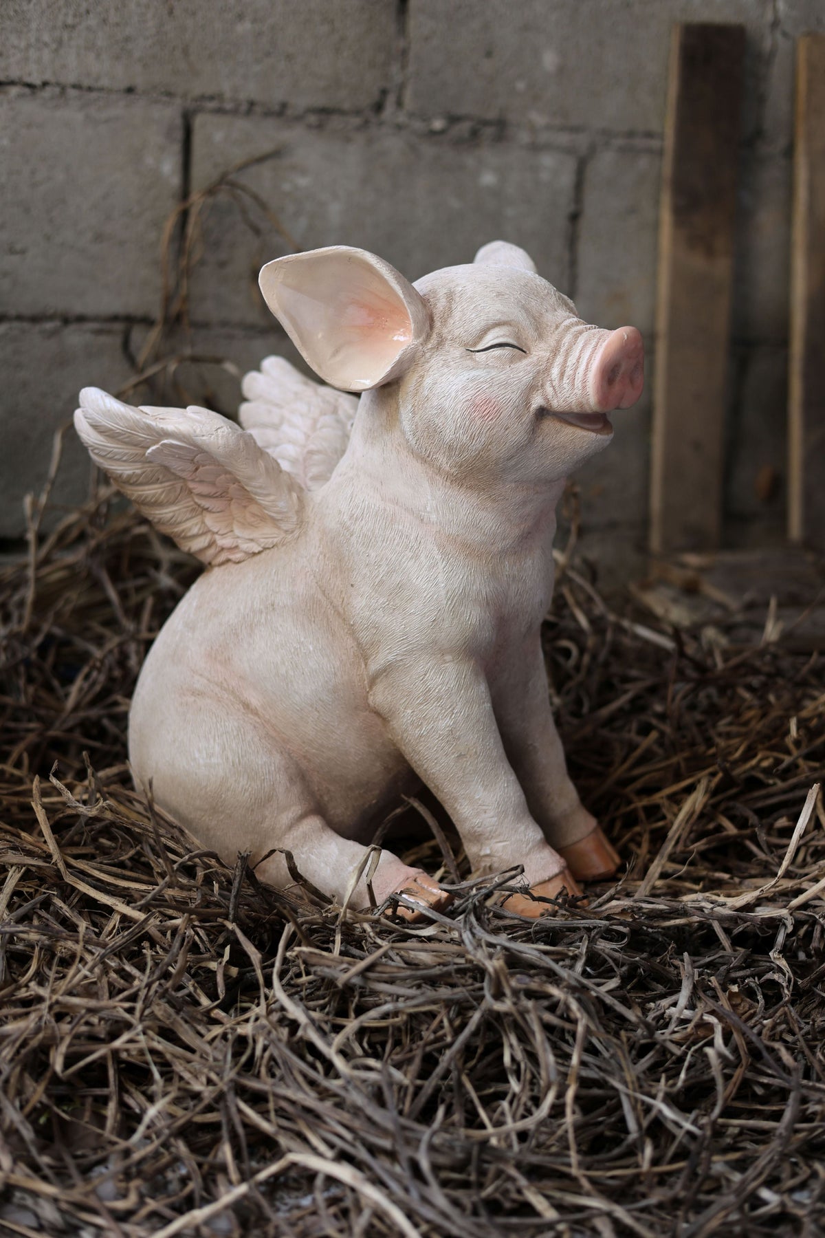Add a touch of whimsy and joy to your space with this delightful 16.65" Smiling Pig with Wings Sitting Polyresin Garden Statue. Featuring a cheerful pig with angelic wings, this charming figure brings lighthearted magic to any garden, patio, or indoor area. Made from durable, weather-resistant polyresin, it’s designed for both indoor and outdoor use and is easy to clean with just a damp cloth. A fun and uplifting gift for animal lovers or anyone who believes in a little everyday magic.