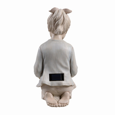 Bring a touch of serenity and nature to your outdoor space with the Sitting Girl Holding Bird Nest Lighted Garden Statue. This beautifully detailed resin sculpture features a young girl sitting peacefully while holding a bird nest, adding a sense of tranquility and connection to wildlife. The integrated solar-powered LEDs light up the nest, casting a soft, warm glow at night. Perfect for your garden, lawn, or patio, this statue adds both a decorative and functional element to your outdoor decor.