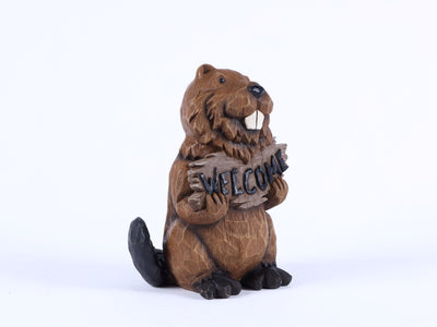 Spruce up your home or garden with this clever beaver figure. He provides a stunning addition to your garden or yard with his charming appearance. Surprise your friends as they see him displaying a lovely "Welcome" sign.