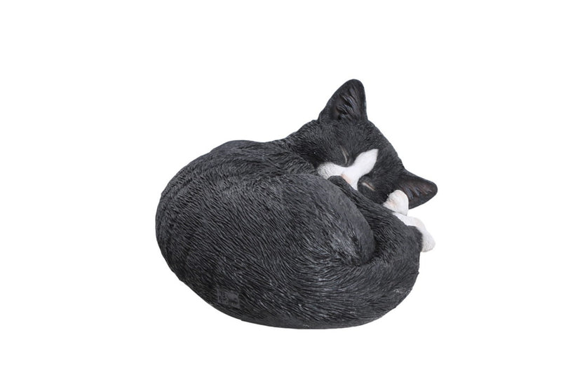 Black and White Cat Sleeping Black and white cat lying and sleeping figurine is a wonderful addition to your home or garden décor. Good for both indoor and outdoor use. This statue is a great gift for cat lovers.