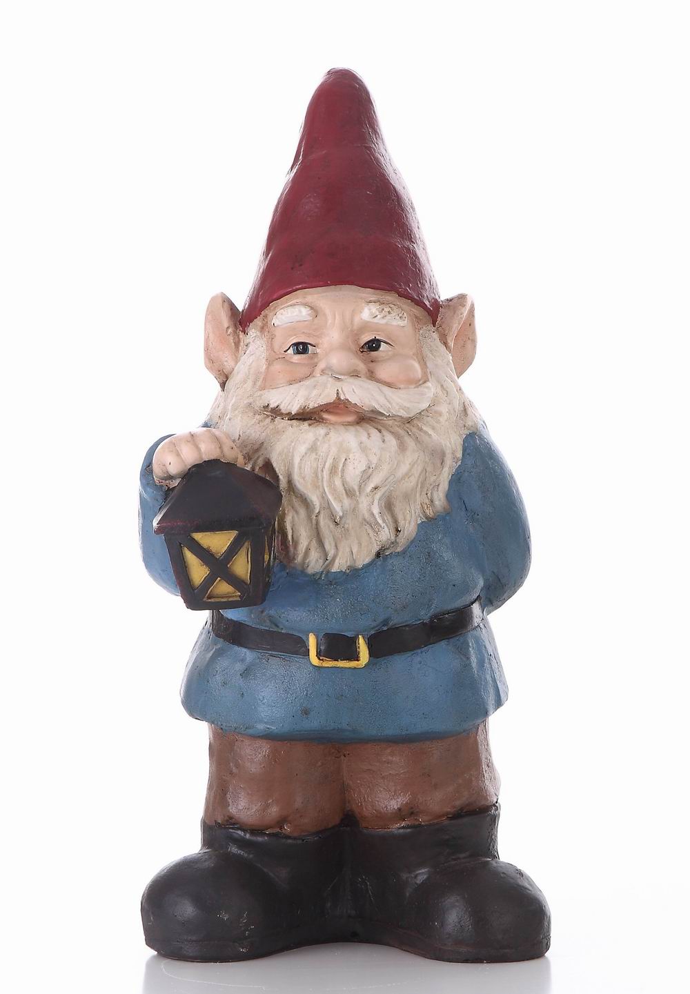 Add a little gnome fun to your entryway, garden or flowerbed. with a pointy elf hat atop his bobblehead, imaginatively sculpted, this gnome statue is made of poly-resin and is good for both indoor and out. Wears brown trousers, a blue shirt, belt, black boots, and the traditional red pointed cap. Height: 28.25" Composition: MGO Clayfibre Would make a lovely addition to any garden.