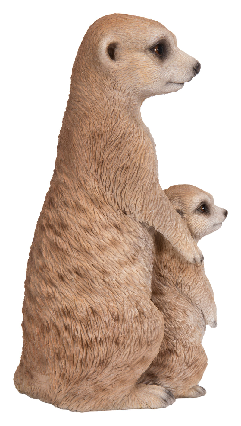Fall in love instantly with this adorable medium-sized mother and baby meerkat. A great gift for your family or friends—or even just yourself! Add this charming statue to your home and it'll be sure to add an irreplaceable warmth! Made of polyresin, this can be used indoors and outdoors.
