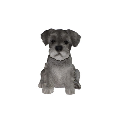 Detailed sitting Schnauzer puppy figurine. Stunning craftsmanship with realistic details and features. Add a fun and unique element of charm to your garden, deck, home, office, or any outdoor space with this adorable figurine. Makes a great gift for dog lovers.
